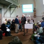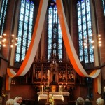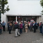Stadtdekan Dr. Johannes zu Eltz erteilte uns den Pilgersegen. Nach dem Pilgersegen machten sich die ca. 120 Personen als Pilgerschar über die Nikolaikirche auf zum Dom. Da hier ein Gottesdienst um diese Zeit stattfand, versammelten wir uns alle im ‘Haus am Dom’, wo Dr. Hans Prömper uns einiges über den Dom St. Bartholomäus erzählte.