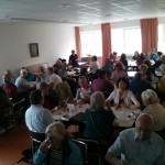 Im Gemeindesaal überrascht uns ein Mittagssnack mit Kaffee, Wasser, Saft und Santiago-Torte. Eine gute Möglichkeit mit anderen Pilgern ins Gespräch zu kommen. Für die Bewirtung ein Dankeschön an M. Nicol, K. Ronji und Team. Schön und lecker war es.