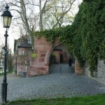 Über die Schwanheimer Brücke gelangten wir auf die rechte Mainseite nach Höchst. Pünktlich zur angegebenen Uhrzeit um 17:00h erreichten wir durch das Maintor, Zollhaus, Schloßplatz und Justinusplatz.